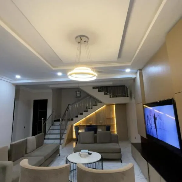 3 BR Duplex Private Compound Ikota Lekki ให้บริการที่พักพร้อมระเบียงและอินเทอร์เน็ตไร้สาย (WiFi) ฟรี โดยตั้งอยู่ใน Ikota ห่างจาก Nike Art Gallery 18 กม. ห่างจาก Ikoyi Golf Course 22 กม.